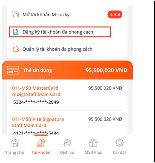 - Bước 2: Mở ứng dụng MSB mBank và thực hiện mở Tài khoản thanh toán MSB