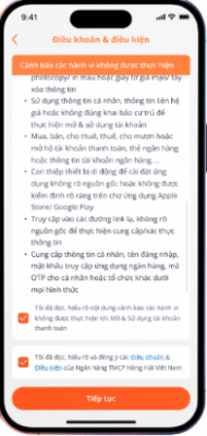 Khách hàng đọc và xác nhận điều khoản, điều kiện |