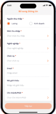- Điền thông tin cá nhân (nguồn thu nhập, nghề nghiệp…)